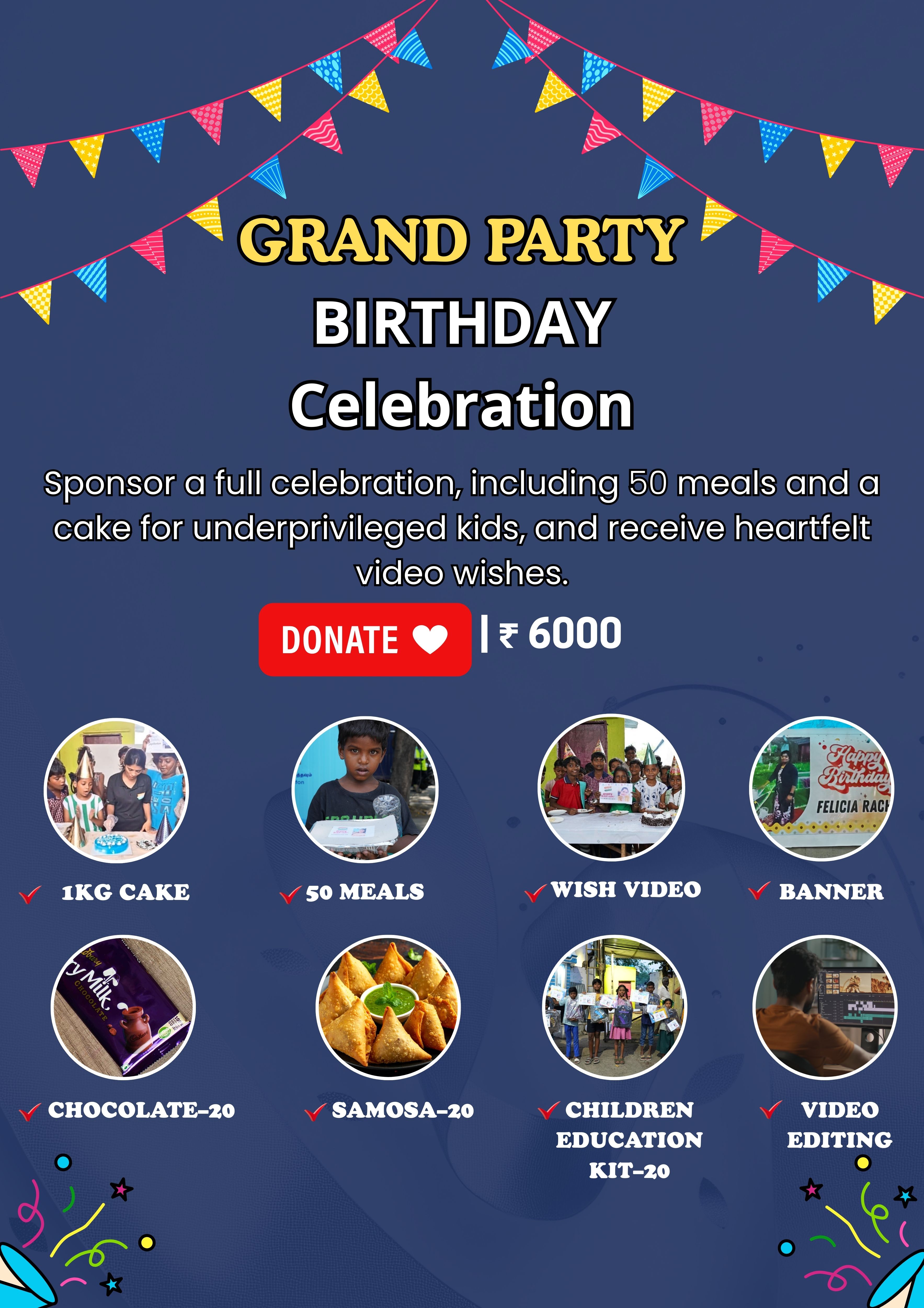 more about usNo Indian should sleep on an empty stomach. We provide nutritious meals to children, families, and the elderly in underprivileged communities, ensuring hunger does not stand in the way of health and growth.